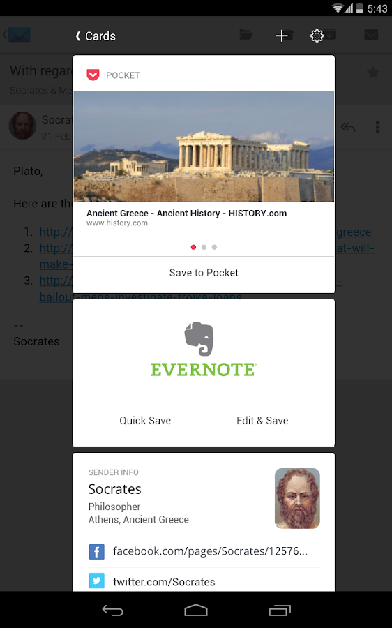 ♥ Save to Pocket and Evernote from your inbox with CloudMagic's Cards - Engadget