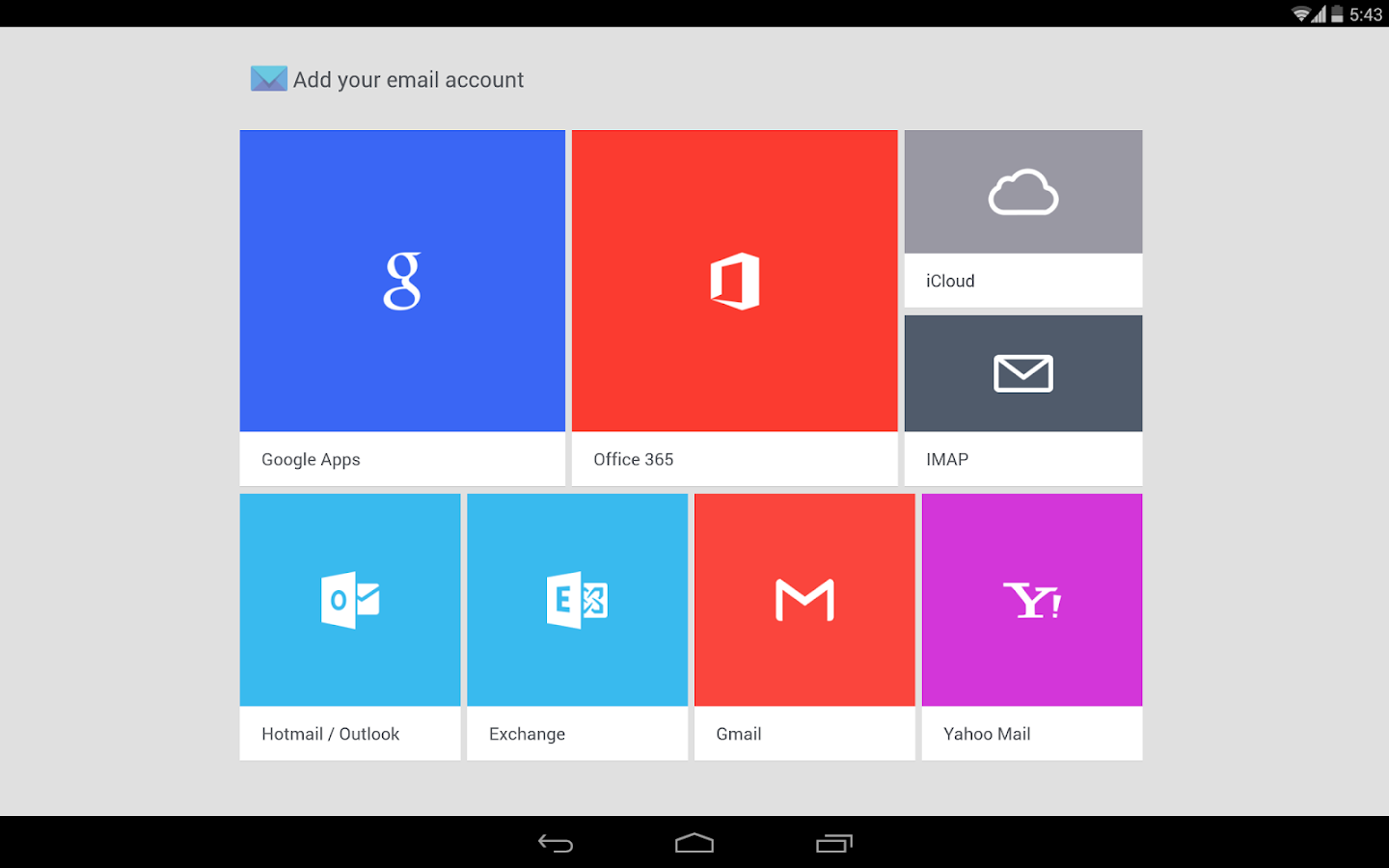 Gmail, Exchange, Yahoo, Outlook, iCloud, Google Apps, Office 365 y